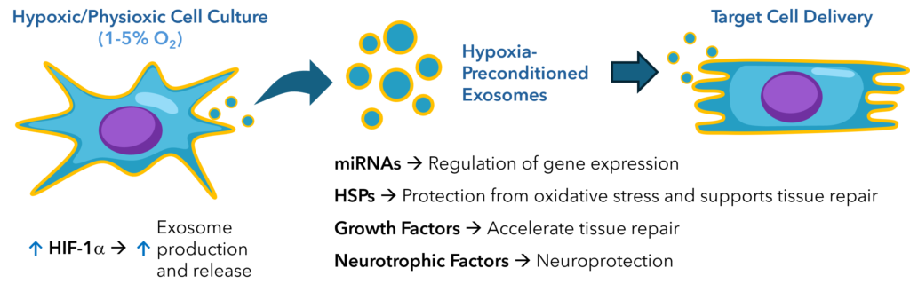 One of the emerging strategies to enhance the therapeutic efficacy of exosomes involves hypoxic preconditioning of the cells from which exosomes are derived. Hypoxia, a condition characterized by low oxygen levels, triggers cellular responses that can enhance exosome production and their bioactive cargo. Hypoxia-preconditioned exosomes (HPEs) have shown promise as novel therapeutics due to their ability to mimic the beneficial effects of hypoxia on cellular functions while overcoming some of the limitations associated with traditional hypoxic therapies. This technical note explores the current state of research on hypoxia-preconditioned exosomes and their potential applications in medicine.